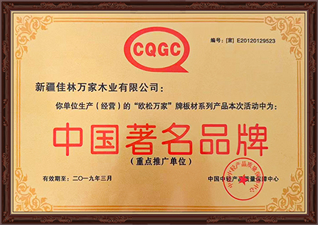 公司拥有“欧松万家”,“欧德科尔”牌板材系列产品被评为“中国绿色环保产品”“中国著名品牌”“中国名优产品”“中国行业十大领先品牌”“全国产品质量公证十佳品牌”,公司也被新疆维吾尔自治区工业和信息化厅评为“新疆维吾尔自治区绿色工厂”称号。